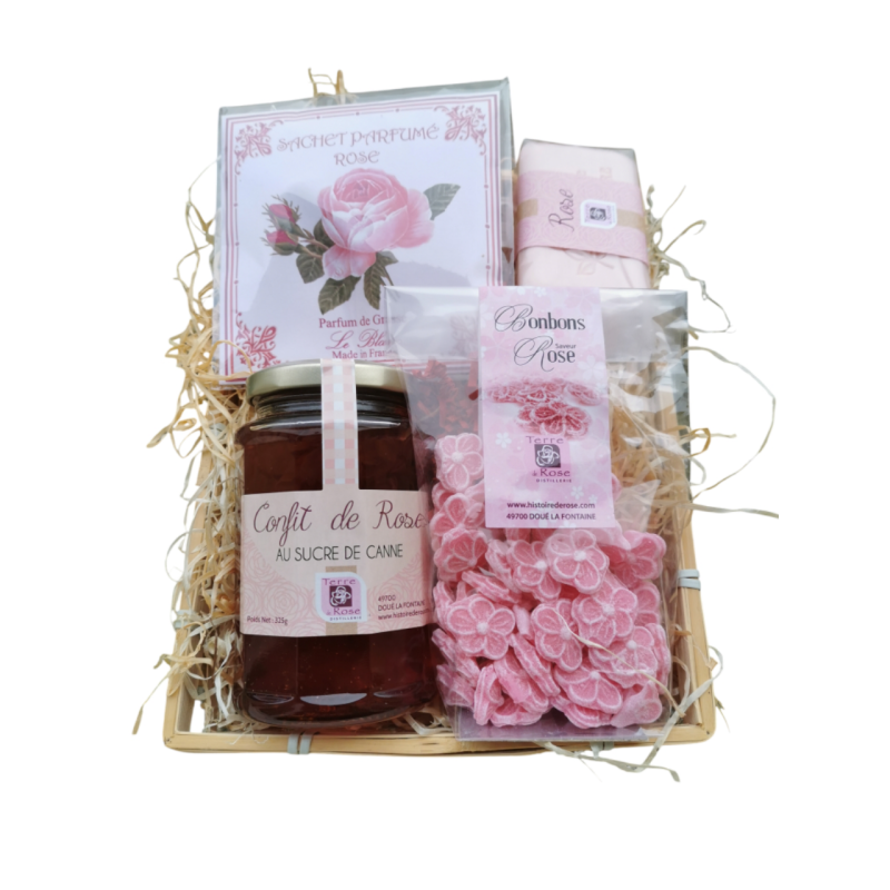 Ingrédients : sucre de canne, pétales de rose séchés, gélifiant : pectine de fruits, acidifiant : jus de citron concentré, arôme naturel de rose